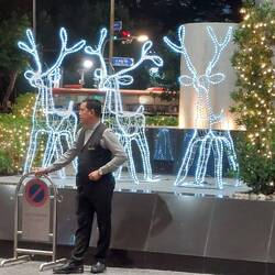 Allerdings verbietet sich wegen der hohen Temperaturen der Einsatz natürlichen Tannengrüns von selbst. Also behilft man sich mit einigermaßen natürlich wirkenden Nachbildungen, die jedenfalls auch optisch ganz gelungen daherkommen. Da die Appartements im ganzen Haus durchweg mit Rauchmeldern ausgestattet sind, wollen wir nichts riskieren und verwenden anstelle richtiger Kerzen und ehe wir gar nichts haben dann lieber solche auf Akkubasis.Leia mais