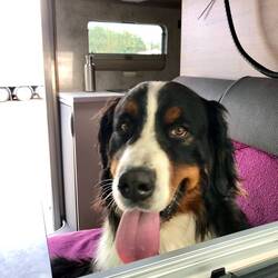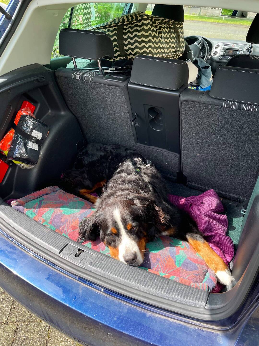 Geduldiges Warten. Wann kann sie denn in den Camper umziehen? 🐶🙄