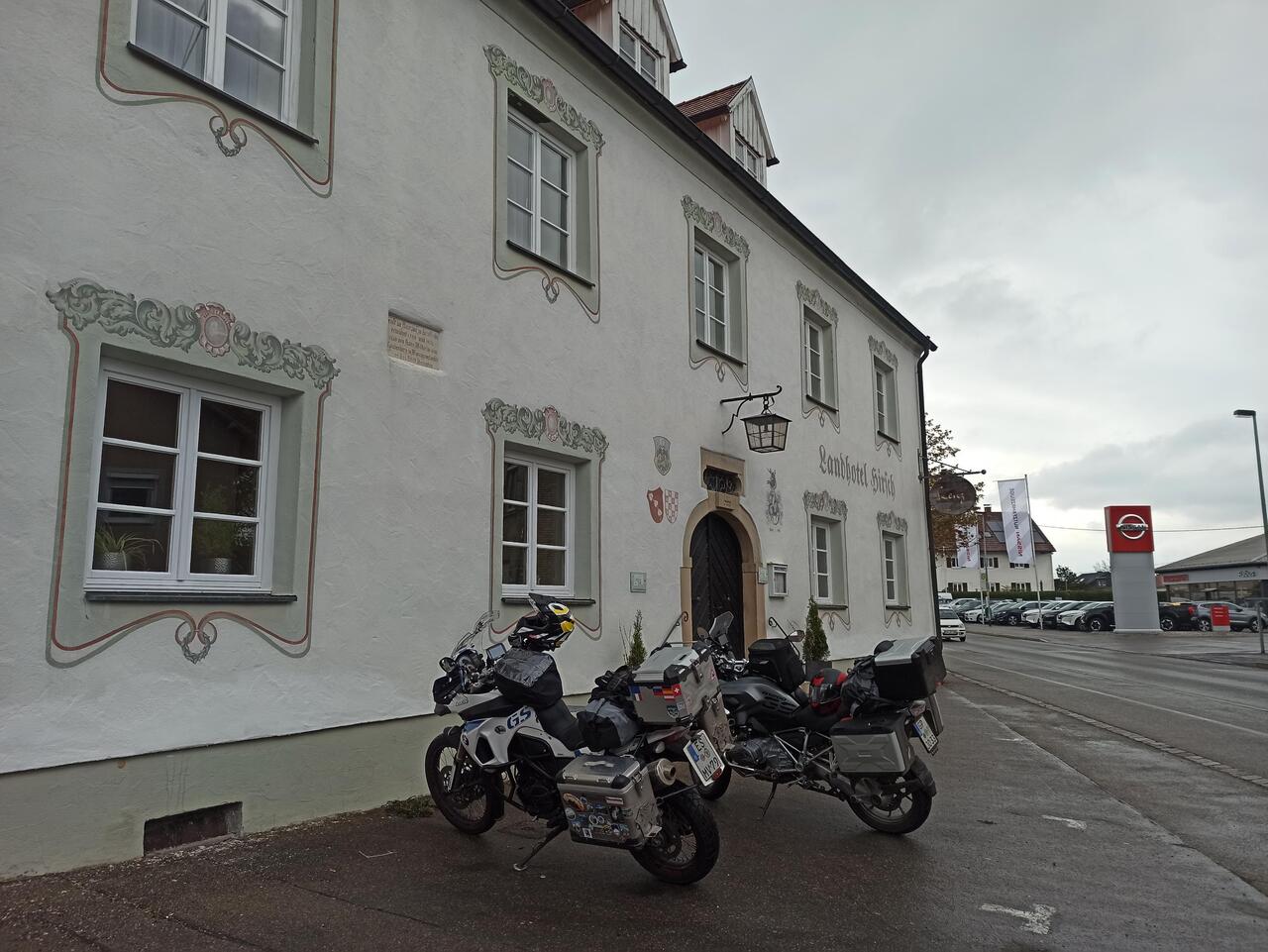 Angekommen am Landhotel Hirsch, aber noch keiner da, der uns aufmacht 😅