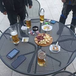 Und gleich mal zum Stiefelbier leckeren Parmesan, Oliven, Chips und Salami gereicht bekommen 🍻🧀