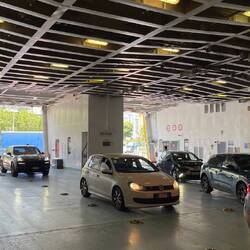 Zurück im Fährhafen und warten, dass die Schranken aufgehen 😅