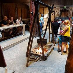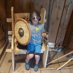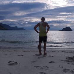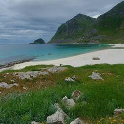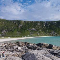 Am letzten Abend bzw Nacht gab es noch etwas besonderes. Nachdem ich tagelang keinen tollen Fisch an der Angel hatte, sollte ich zwischen halb 12 und um 1 nochmal Glück haben. Nach dem Stand Up Paddeln sah ich nämlich, dass der Makrelenschwarm sehr nah an den Schären schwimmt. Genau richtig um durch zu "Blinkern", mit Erfolg. Drei schöne Makrelen konnte ich fangen wobei sie größte ganze 40cm lang war. Schnell ausnehmen, einfrieren und dann schnell ins Bett. Die Nacht frischte der Wind auf, deshalb aßen wir heute früh im Womo. Danach ging es über Gimsøysand, übrigens tolle Kirche am Strand dort, ins Wikingermuseum nach Borg. Dort fand ein Bauer in den 80er Jahren beim Pflügen seines Feldes diverse Mauerreste und altertümliche Gegenstände. Nach archäologischen Ausgrabungen stand fest, dass es ein Wikingerdorf war, in welchen wohl rund 1800 Menschen lebten. Wir besuchten ein original nachgebautes Wikingerhaus eines Wikingerkönigs und liefen zum See um das Schiff zu begutachten. Wahnnsinnig gemütlich so ein Wikingerhaus! Nach dem Besuch gab's Kaffee im Womo bevor wir zu unserem Nachtplatz fuhren. Zum Glück gab es einen freien Platz in einer Haltebucht am Hauklandstrand. Ein richtiger Insta Hotspot hier. Nicht umsonst stehen vorne am Strand viele Zelte von "jüngeren" Abenteuer suchenden. Klingt komisch, aber mit 35 wäre ich da Alt😄. Es toll hier, das Meer, die Berge und der Sand, es sind eben auch magische Orte. Die Kinder waren jetzt aber erstmal K.O. und schauten einen Film, Gustav schlief. So rannte ich 10km einmal um den Berg am Ufer des Meeres zum Uttakleivstrand. Sport einzubauen ist manchmal Timing. Zum Abendbrot gab's, na Klar, die Makrele. Für die Kids gab es noch Burger und Pommes von gestern. Mittlerweile haben wir auch einen guten Weg gefunden, um das "zu Bett gehen" für die Kids angenehm zu gestalten. Ich nahm die drei Kids und ging nochmal zum Strand zur Schatzsuche während Anna aufräumte und die Betten fertig machte. Zack, da war es schon dreiviertel 10. Die Zeit rennt hier..Bei so viel Abwechslung und Abenteuern kein Wunder. Morgen planen wir einen Berg hier am Strand zu besteigen, den 400m hohen Mannen. Später reisen wir nach Leknes. Mal schauen wo wir schlafen 😴 bin schon gespannt, Gute NachtLeggi altro