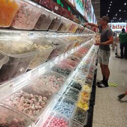 Wie hätte es auch anders sein können, der Sportprofi steht an der größten Zuckersachebar ever und sammelt sich Nervennahrung ein ... So cool 😎