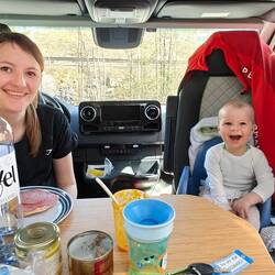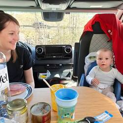 Morgens 😁 um 11 Uhr (fast wie immer) sind wir losgefahren - nachdem Samuel um halb 8 wach war um dann um 10 Uhr wieder zu schlafen. Den Camper wieder versorgt. Leider konnten wir kein FrischwasserLeer más