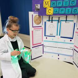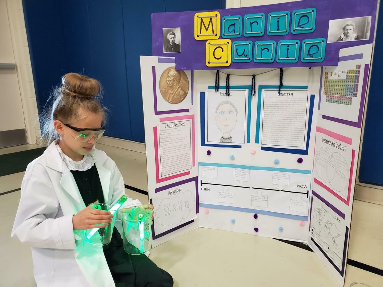 5th grade wax Museum! Tried to get a selfie with Marie Curie herself...she didn't like that 😂😂😂. So proud of this girl and all her hard work 💞