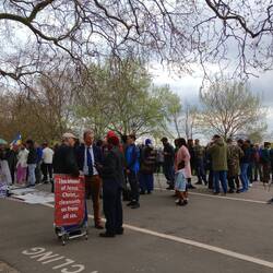 This place is huge! And very pretty. The crowd is at Speaker's Corner. Included the Marble Arch, previously at Buckingham Palace and now at one entrance to the park.