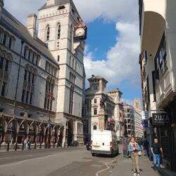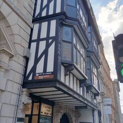 The walk continued :) The building with the green roof is the Australian "embassy," the interior of which was used for Gringotts in the Harry Potter movies. The timber-framed building is one of theBaca selengkapnya