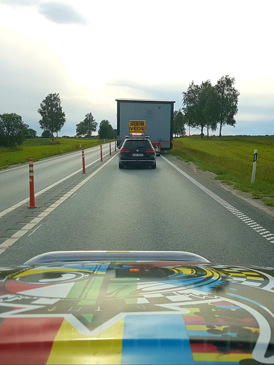 Fährt ein Haus auf der Fahrbahn. Achtung. Es liegen keine weiteren Meldungen vor.