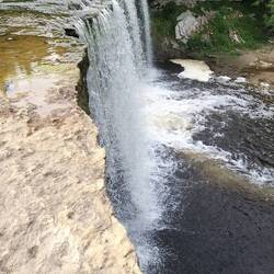 Ein schöner niedriger Wasserfall aber sehr breit.