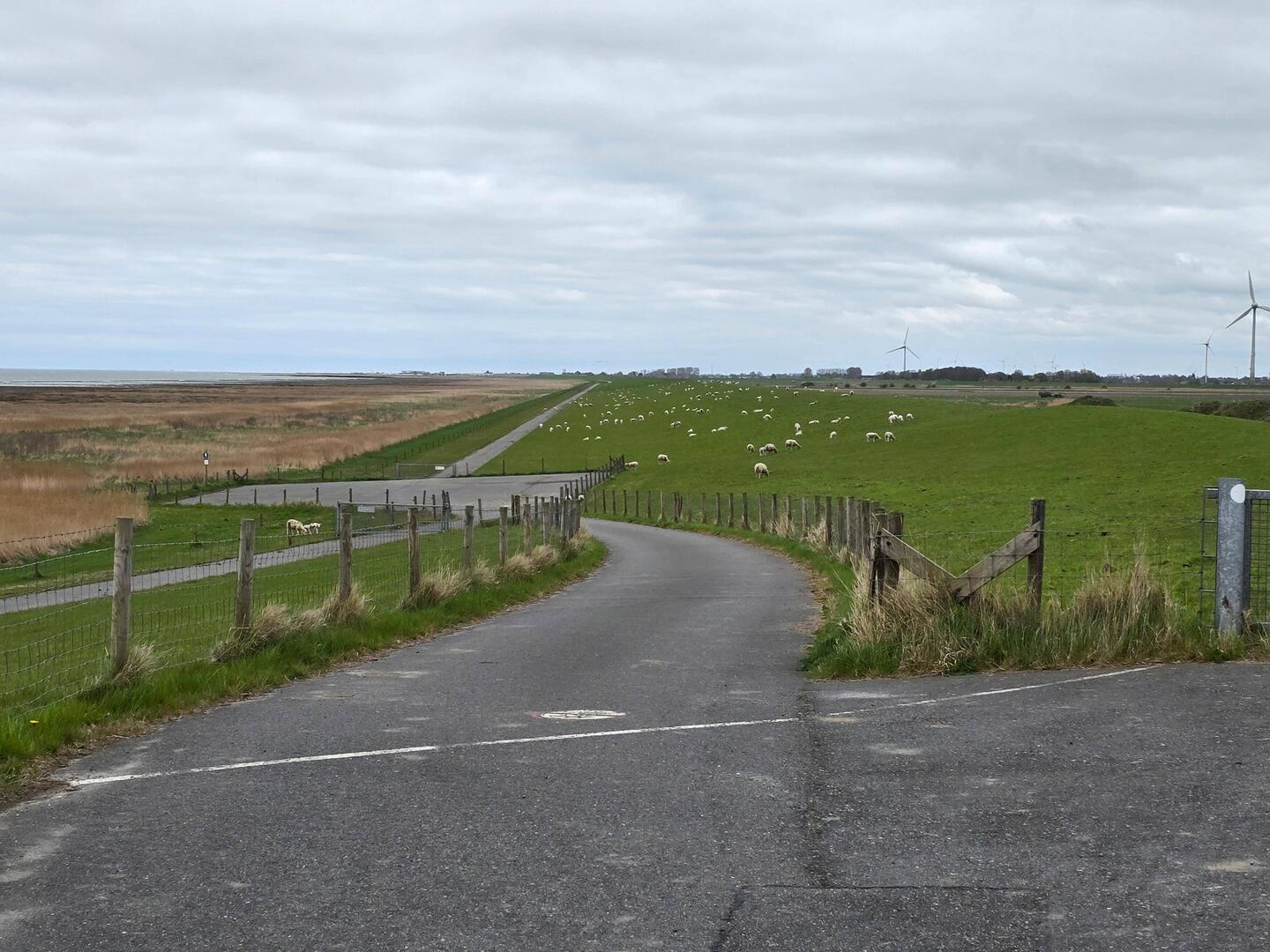 Fahrradtour über Land nach Neuharlingersiel, hinterm Deich zurück. Kabeljau von Albrecht zubereitet.
