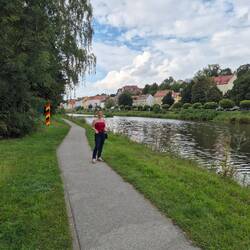 Wanderung auf dem Damm entlang der Weichsel auf dem Jakobsweg ins Zentrum.