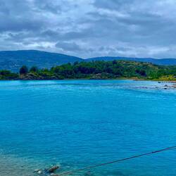 Ein fantastischer Weg führt hier am See oder Fjord lang, bergauf bergab mit engen Kurven.