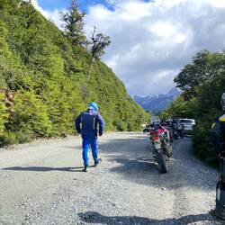 Ich habe mir den Kupplungshebel abgebrochen, Glen aus Minnesota hat sich einen Nagel in den Reifen gefahren und unser Tourguide William hat irgendwo auf den letzten 120 km Czytaj więcej