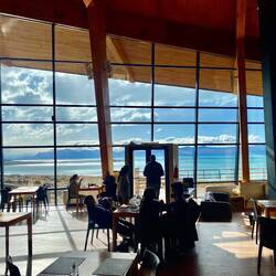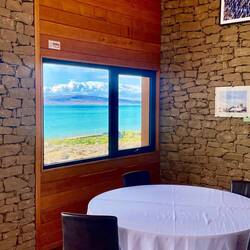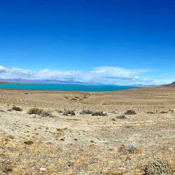 …direkt am Wasser. Der See hat eine sensationelle Farbe, und es weht wieder mit 9-10 Windstärken