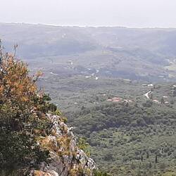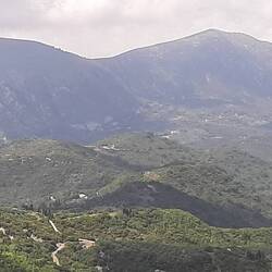 The scenery as we went up, and up some more, was gorgeous with fertile valleys below and forested mountainsides. Fortunately, there isn't a lot of traffic so we can go at a comfortable speed on these zigzag roads. At least they are paved, unlike our Albanian experience! After poking through traditional villages, we went down to Nydri and revisited Tranquil Bay from the land side with a walk along to the church at the point. It's where we anchored twice during the thunderstorm ⛈ last Oct.!