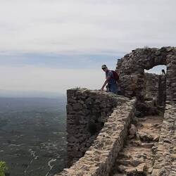 I've resorted to using Google maps on my phone rather than the 🤬 NAV in the car so we were able to find the route to the Monument of Zalongo this time. It is up the mountains and atop a cliff. It commemmorates the mass suicide of women and children in 1803 in order to be free of Ottoman ruler, Ali Pasha, whose house we saw at Vonitsa Castle. We climbed the 410 steps up the cliff to see the Monument, a small church and the gorgeous view. It's called the Dance of Zalongo because they danced before throwing themselves off the cliff. 😭🤯