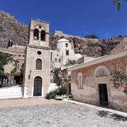 After a lovely breakfast and walk along the sea, we headed north from Monemvasia to Nafplion past orange and olive groves, a fig orchard (only one we've seen as they just seem to grow wild everywhere!), mountains and valleys. We had a series of switchbacks coming down to the sea across from Nafplion, then around the top of the bay and into town. It was so busy! We found out that with Orthodox Easter and a Yacht show, hotels were booked but we were able to get 1 night. We parked 2 blocks away then wandered along looking at the super yachts and through the old town, had dinner and to bed.