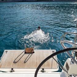 We left Miseno and headed toward Gaeta staying clear of 4 ferries, 3 tour boats and a cargo ship as we rounded the Cap from Miseno. Lots of space but lots of waves 🌊. ugh. From then on it wasLes mer