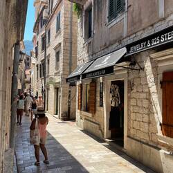 anders als gedacht, nämlich nur mit Auto, besuchen wir bei gefühlten 50 Grad Kotor und chillen am Nachmittag in der Bucht von Montenegro