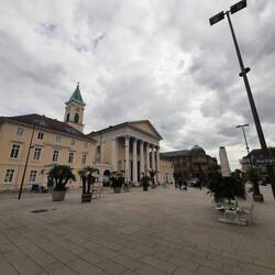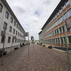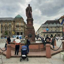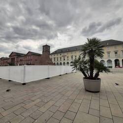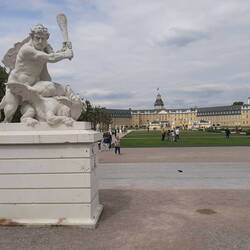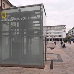 Schloss, Platz der Grundrechte und der Marktplatz mit der Pyramide und neuer U-Bahn-Station