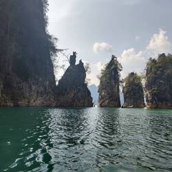 Wir haben uns viel von dem National Park versprochen. Der See ist künstlich durch einen Damm aufgestaut um Elektrizität zu erzeugen. Um den See herum ist ein riesiger Nationalpark und etwa 70 km weiter ist das Städtchen Khao Sok. Mit ein paar Wanderungen in dem Nationalpark.