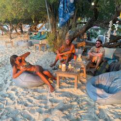 Auf Gili Tranwangan mit Strand, Cocktail, Sonnenuntergang, Pizza und noch mehr Alkohol bis spät in die Nacht!