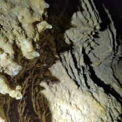 Höhlenforscher am Werk, 30 Minuten teilweise auf allen Vieren durch eine Limestone Höhle mit Tropfsteinen. Dann stoppte uns ein tiefes Loch voll mit Wasser.