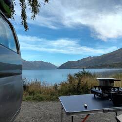 Direkt unsere Dachterrasse an unserer Campsite in den Bergen überhalb Queenstowns ausprobiert.