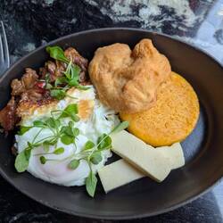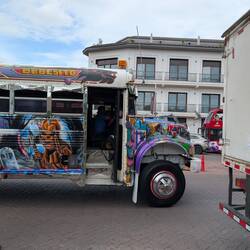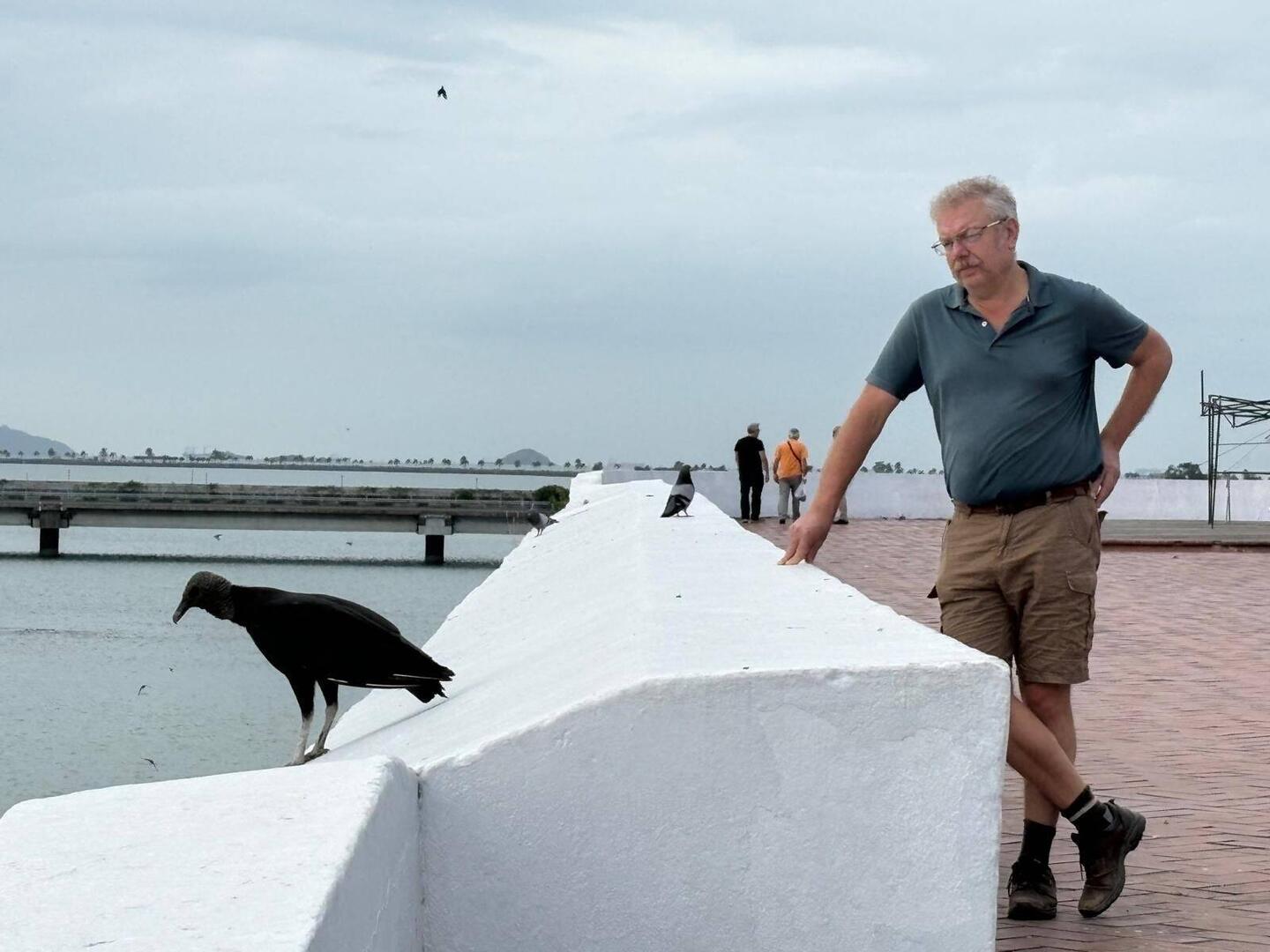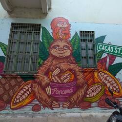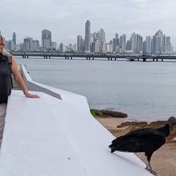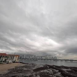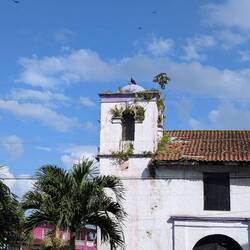 Kind of killing time after the deluge. Brooding skies, murals, pelicans and a typical Panamanian breakfast.