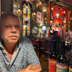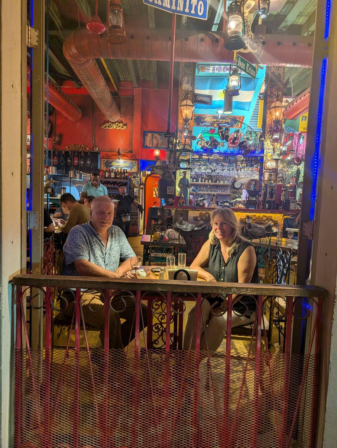 Wacky decor and meat dinner. Mariachi band walked but we couldn't find them afterwards. menus printed on wine bottles. something different