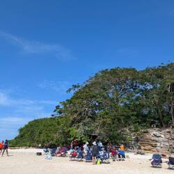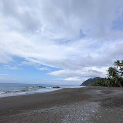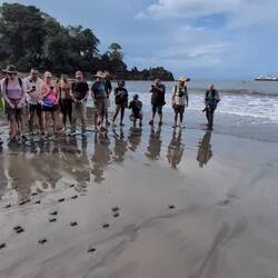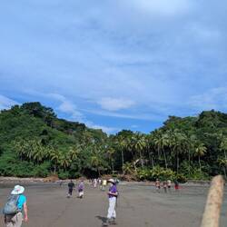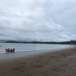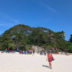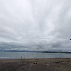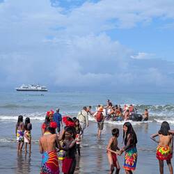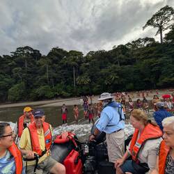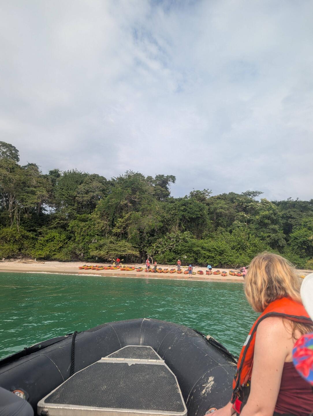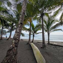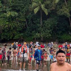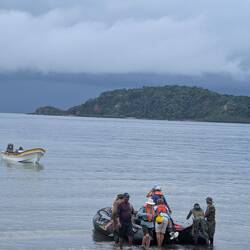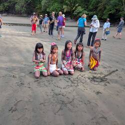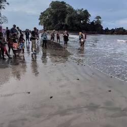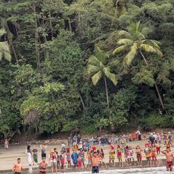 Playa Muerte. Arrived to a welcome party, singing and dancing, and helping land in the surf, and loads of onlookers.