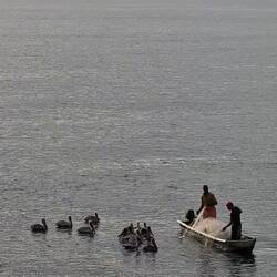 Woke up with the Darien Gap outside the cabin window. watched some local fishermen with brown pelicans in attendance.