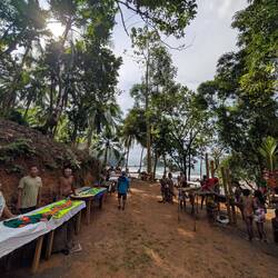 Just one of those magical places you find very occasionally. After the turtles, we climbed a small muddy hill to the "Big House". A speech, a song and dance and some time for shopping - as ever theMeer informatie