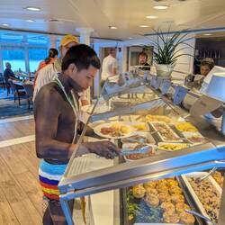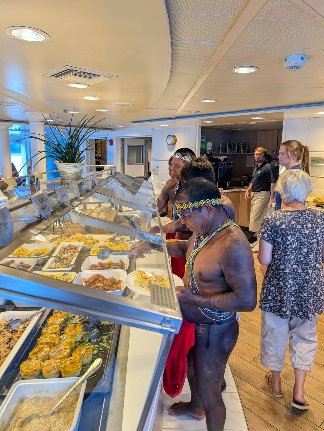 The day started with some if the Embera coming on board. Forest dwelling people who have migrated north from Colombia. But they are not averse to a full English from the buffet!
