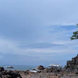 As map shows, the vessel took the long way round to get here, cruising right around the islands during the night. small island, very average snorkeling but good frigate bird and xxxc action. alsoMeer informatie