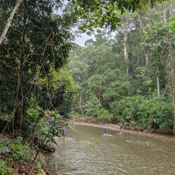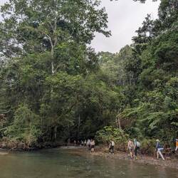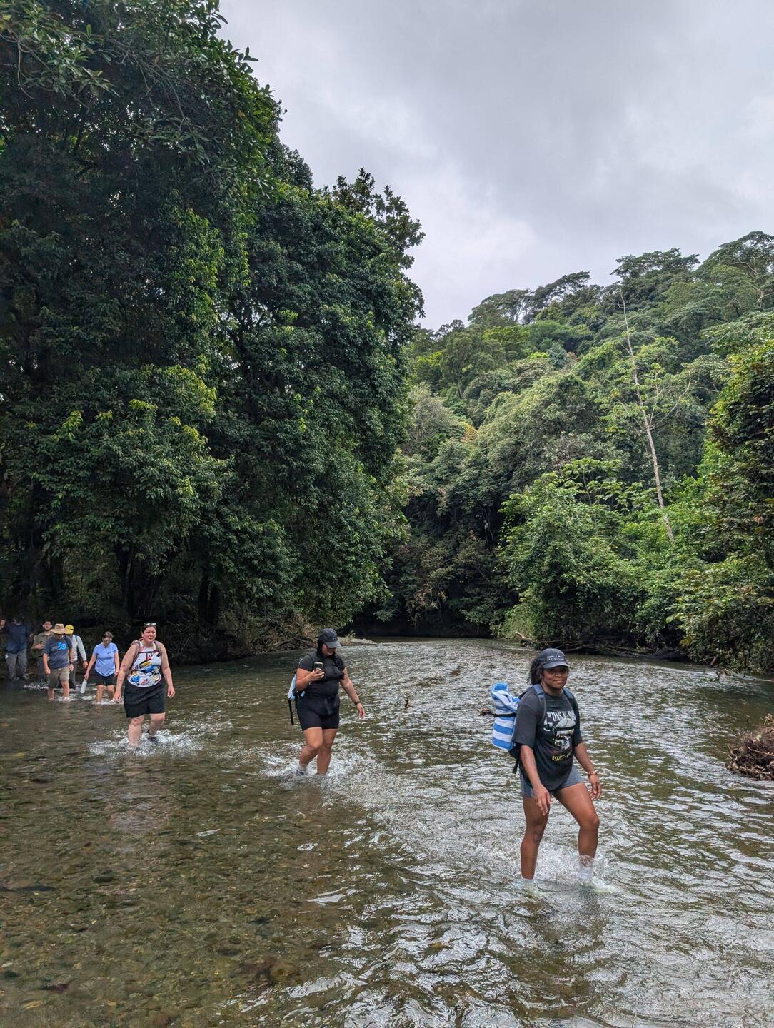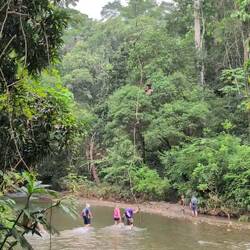 Jungle trek in Darien Gap. Jimmy Cliff sound track - Many rivers to cross. I took river crossing shoes, but just marched whole way in walking boots with wet feet. Poured with rain, people falling overMeer informatie
