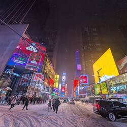 bad time to try a travel show in New York. major blizzard shut airports and kept people at home. New York in snow. tried Six on Broadway (not broad and Times Square isn't square). I can see why peopleLæs mere