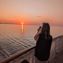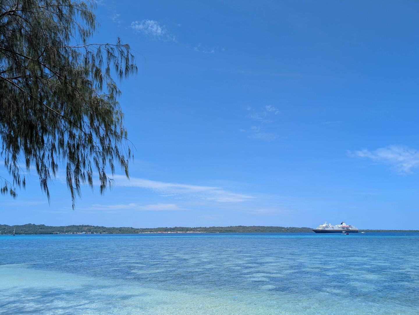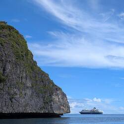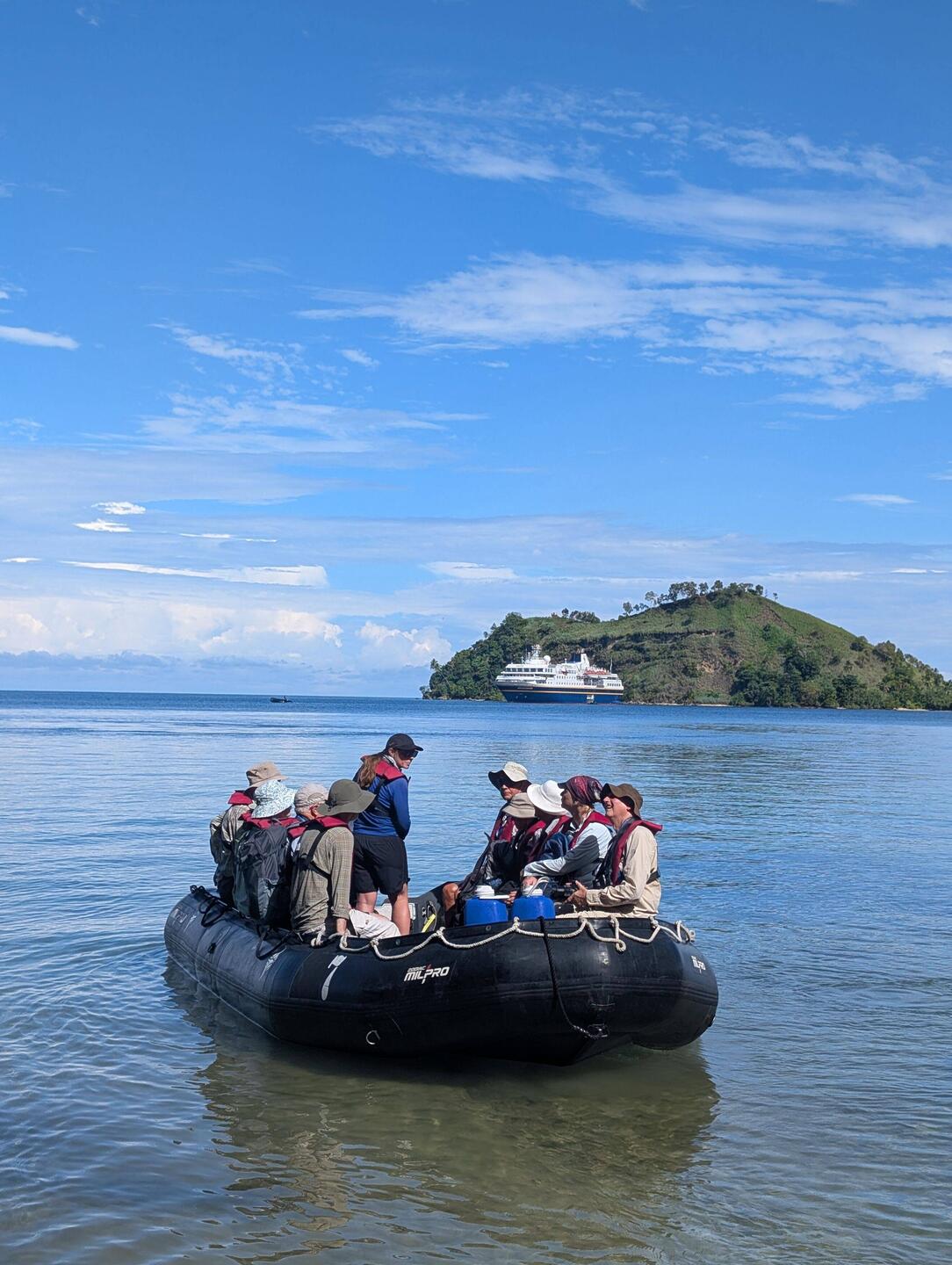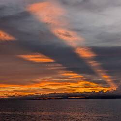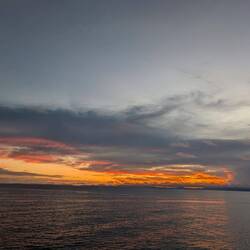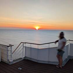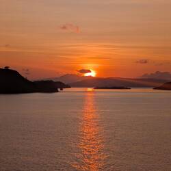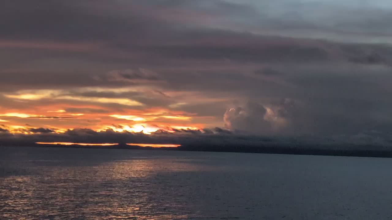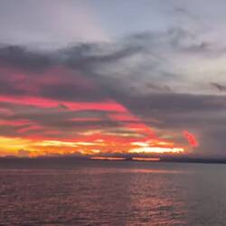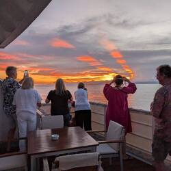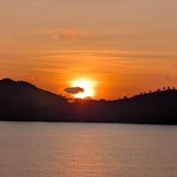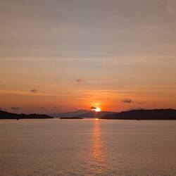 145 nautical miles from Bali, a visit to Sumbawa. Early pre-breakfast on back of deck 6 with views of Sumbawa island..