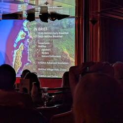 Ashore for nature walk. Spent around an hour shuffling through rubbish strewn remains of old park centre and accommodation. Dire. Zilch of interest. Noticeable that at end of day recap there was zero mention on the so called. Nature walk.