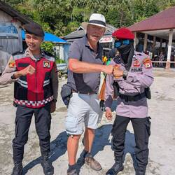 Lots of chat in very broken English with a few words of Bahassa and Arabic thrown in, much to great amusement of the local constabulary. Asked how tall you needed to be in UK to be policeman. I hammed it up a bit, 6 foot 3 or so, beyond their imagination. Also pointed out no guns, but short stick/truncheon, acted out in mime.