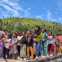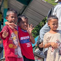 To start. Whole village turned out to greet us, and kids limed up to High five or bump fists. Almost everyone very keen to engage, and they were taking as many photos of us as we were of them . A few language lessons (Terima Kasih-) thank you.