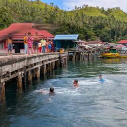 The village is inhabited by sea gypsy people, though their stilt houses looked fairly permanent, especially the new concrete ones.