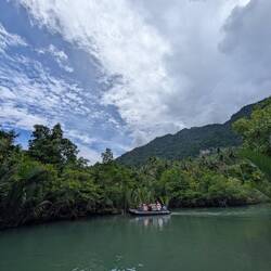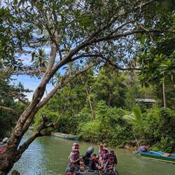 Very hot sweaty walk through proper jungle. 45 minutes of great noises and a few butterflies on wet slippery muddy path. Emerged at fantastic viewpoint with hutte offering tea-coffee (in same drink) and snacks.