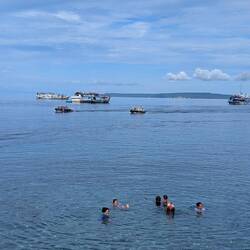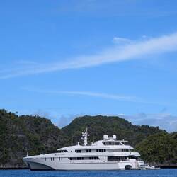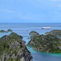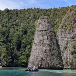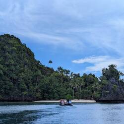 Zodiac cruise around some of the chain of islands at the end of the Misool archipelago. Large super yacht (White Rabbit) here, only the second ship we have seen since Bali! ( 1small freighter in Buru). . Splendid limestone formations, magic beaches, sea full of Salp, and a lot of jelly fish so snorkeling cancelled.