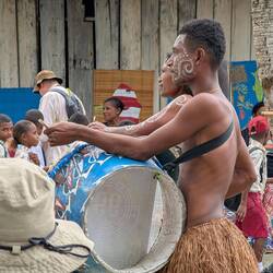 Mutus Island - magic place. The stats are they get 135 visiting tourists per year. When the ship arrives. Huge drumming welcome, whole village in attendance, lots of dancing and clapping, food in abundance and the de rigeur coconut drink.