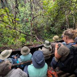 Eventually arrived at walk start in jungle. 35 minutes walk uphill to ingenious small natural amphitheatre overlooking BOP display arena. Early group in possession of all best seats.