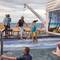 Lots more singing and dancing from school girl team, while small boys continue to throw themselves into the sea.