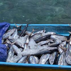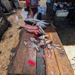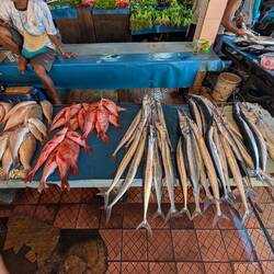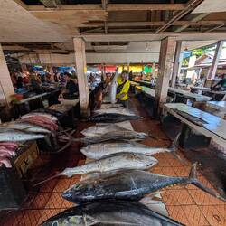 Ashore to fish market in Manokwari. Mostly yellowfin tuna but some other smaller. Proud fisherman Obeid insisted on showing me his prize tuna.