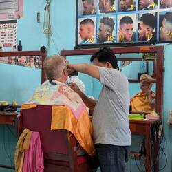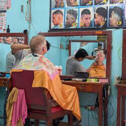 Colin the barber gave me a 3.5 star shave. Missed a little patch on right jaw, and massage substandard. Rest of shave excellent, and for under £1.