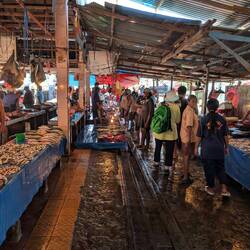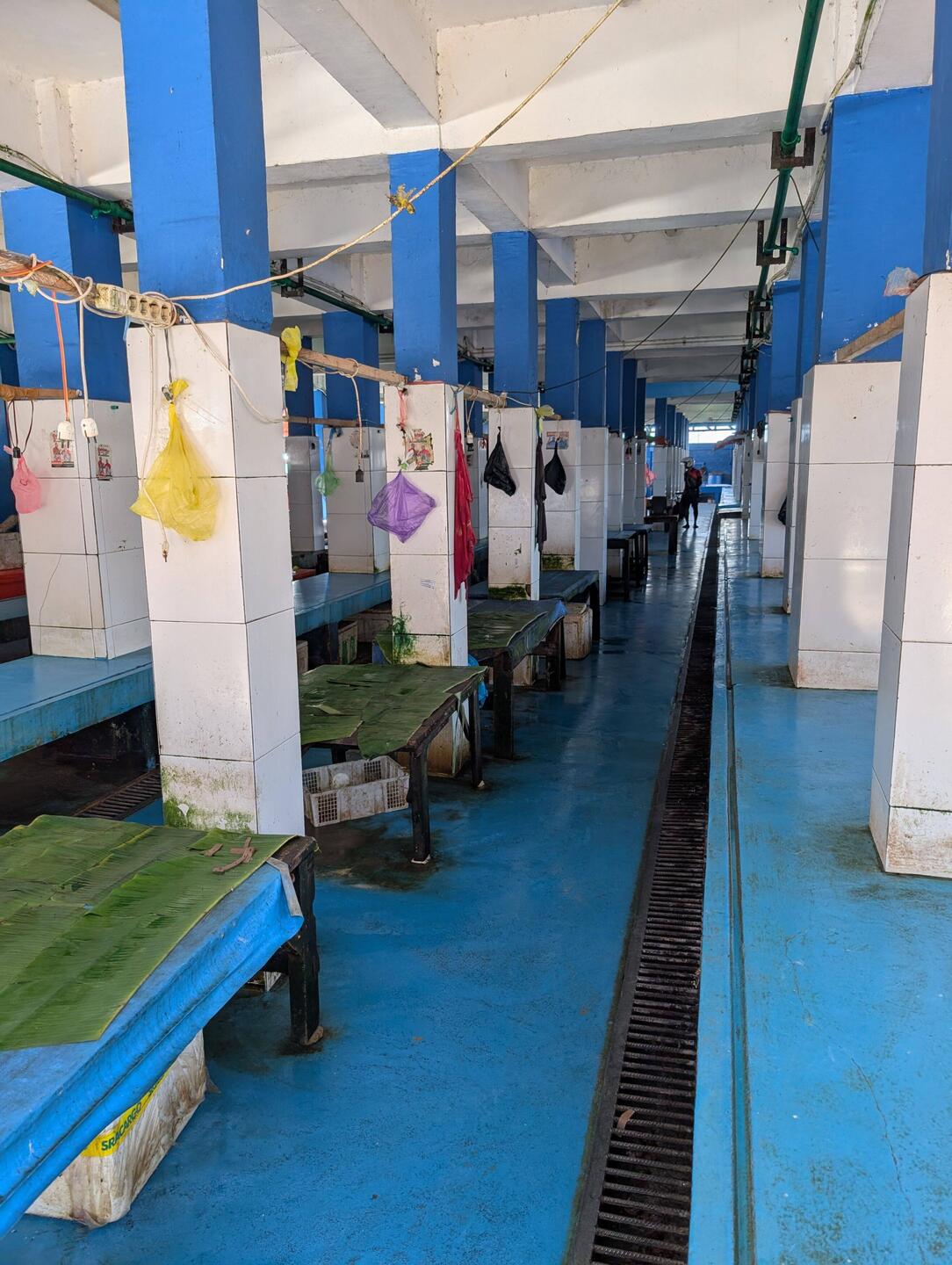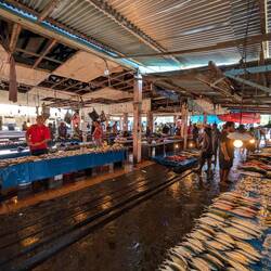 All fish in market were very fresh, but floor covered with rank water pools and remains of old fish.